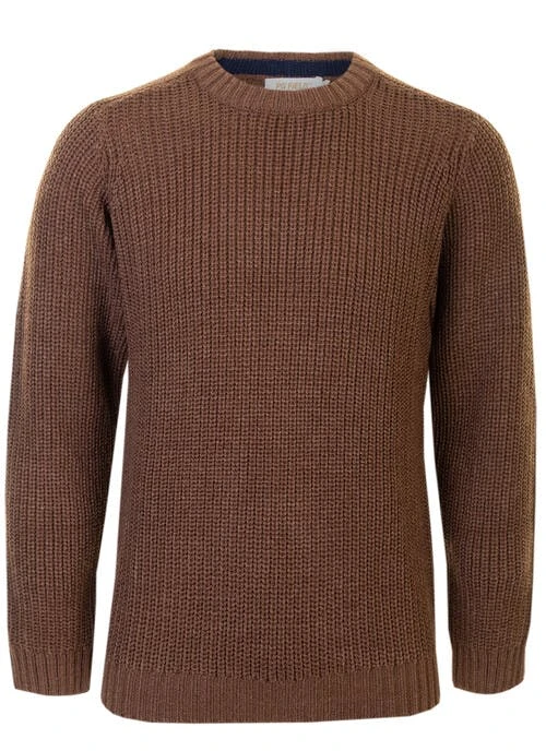Our famous tan fisherman’s rib jumper by PG Field is available in a crew neck style. In a chunky yarn, it makes a perfect weekend look, worn with cords, chinos or jeans.