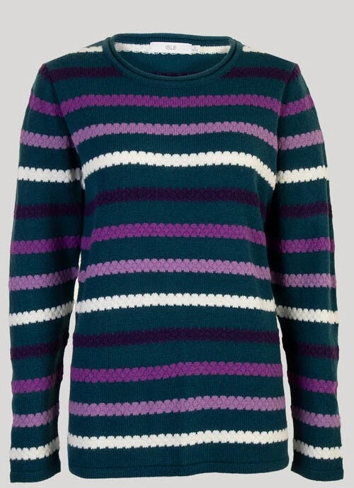 Liven up your layers with this stripe jumper by Isle. The allover textured knit has been designed in a comfortable regular fit with a flattering crew neck. Wear with jeans or jeggings for a casual look.