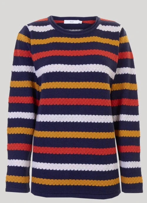 Liven up your layers with this stripe jumper by Isle. The allover textured knit has been designed in a comfortable regular fit with a flattering crew neck. Wear with jeans or jeggings for a casual look.