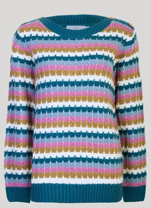 No wardrobe is complete without a stripe jumper. The allover textured knit by Isle is designed in a comfortable regular fit with button shoulder detailing for extra snugness. Wear with jeans for a casual look.