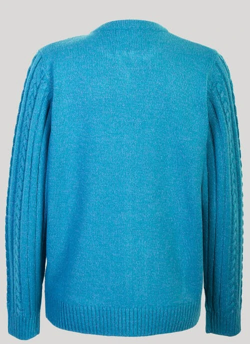 Cardigan with a rounded neckline and centre front zip. Cosy and textured two-tone boucle yarn, comfortable easy fit. Soft warm touch. Front Pockets. A great layering style to coordinate with Honor Millburn Collection trousers and skirts.