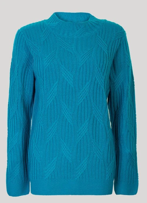 Stay cosy and snug with this textured turtle neck jumper by Isle. Chevron cable detailing on the body and neck trim, with long sleeves and a relaxed shoulder, make this a knit you need this season.