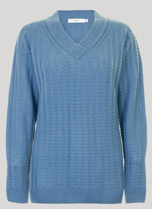 A perfect staple to any wardrobe, this jumper by Isle is a must have on your style list. Designed with an allover cable knit and a flattering v neck finished with button detailing, wear with jeans or jeggings for a casual look.