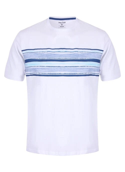This white stripe t shirt by James Pringle is made from 100% cotton. Breathable and comfortable its perfect for your summer wardrobe.