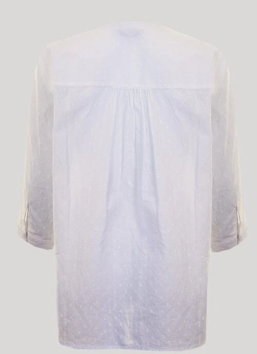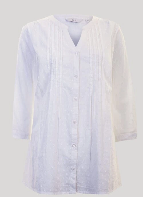 This white blouse by Isle is a must have piece for your wardrobe. The delicate cotton dobby fabric is lightweight and breathable, perfect for warmer days. Pair with your favourite cropped jeggings or shorts for an easy summer look.
