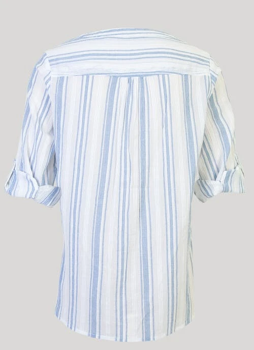 This yarn dyed stripe blouse by Isle is a must have piece for your wardrobe. made from 100% cotton the fabric is lightweight and breathable, perfect for warmer days. Pair with your favourite cropped jeggings or shorts for an easy summer look.