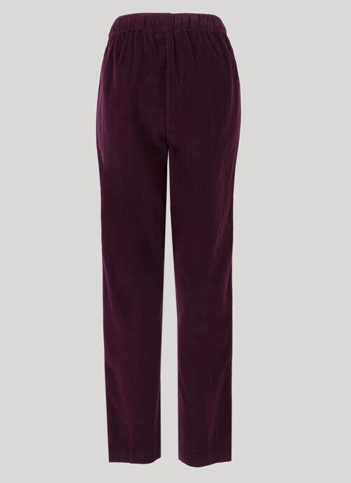 These soft needlecord casual trousers have a fully elasticated waist to create a relaxed, flattering fit. With an easy to wear pull on design, handy front pockets and a tie-detail, they are perfect for teaming with your favourite tee for everyday wear.